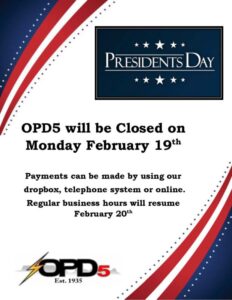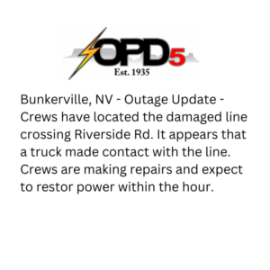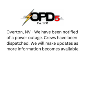 OPD5 News News Font Size: Share Share on FacebookShare on X (Twitter)Share on PinterestShare on LinkedinShare on Email Feedback Print Carousel, News OPD5 Chairwoman of the Board received NRECA Director Gold Certificate March 30, 2026 [...] News Presidents Day 2024 Closure March 30, 2026 [...] News Whipple Substation March 30, 2026 [...] Carousel, News Alert!!! March 30, 2026 [...] News July 4, 2023 Office Closure March 30, 2026 [...] News Bunkerville, NV Outage Update 06/27/23 June 27, 2023 [...] News Bunkerville, NV Outage Update 06/27/23 March 30, 2026 [...] News Bunkerville, NV Power Outage 06-27-23 March 30, 2026 [...] News Overton, NV – Power Outage Update 6-19-2023 March 30, 2026 [...] News Overton NV – Power Outage 06-19-2023 March 30, 2026 [...] Posts pagination Previous 1 … 5 6 7 … 13 Next