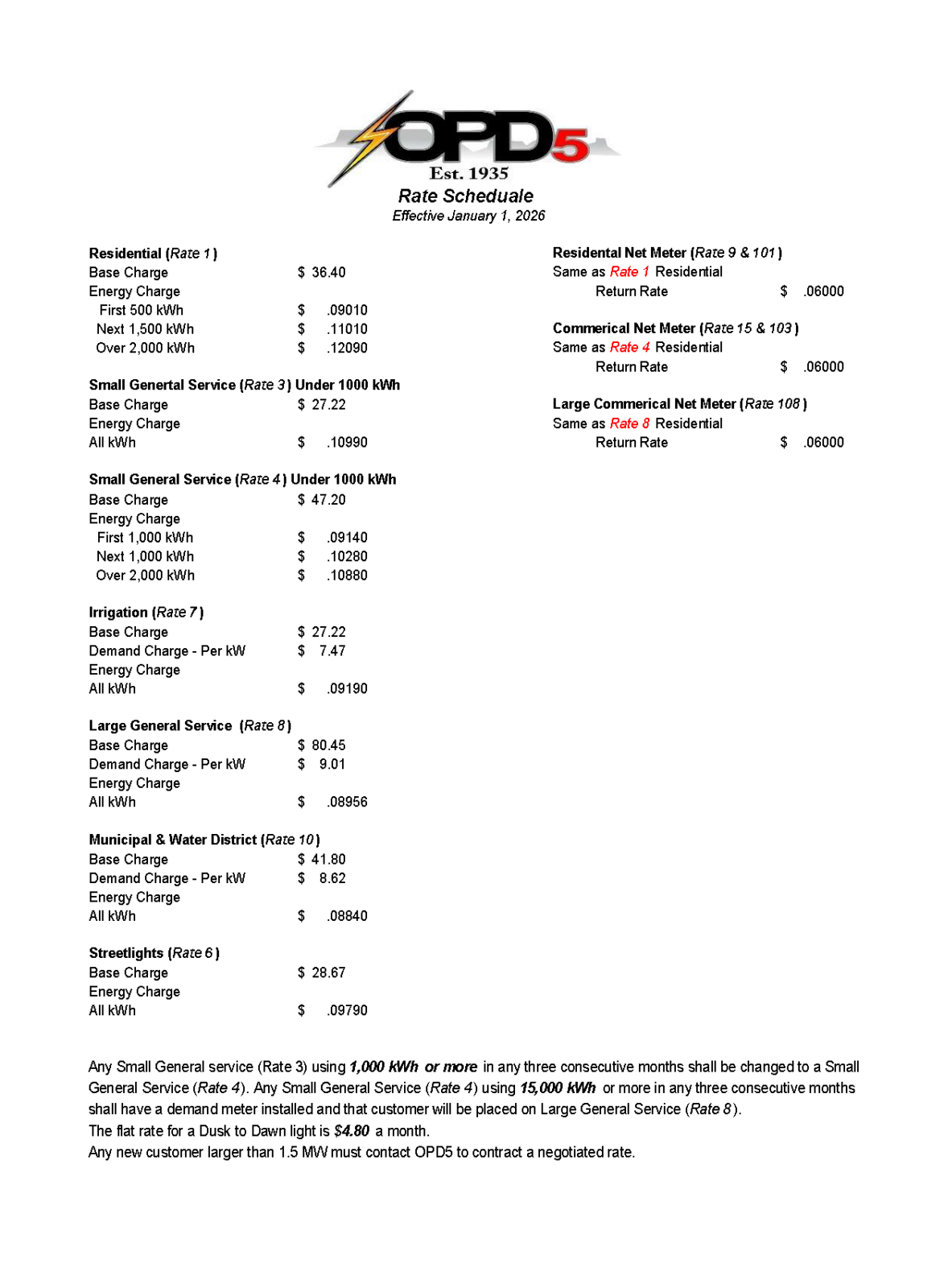 NEW CUSTOMERS LARGER THAN 1.5 MW MUST CONTACT OPD5 TO CONTRACT A NEGOTIATED RATE