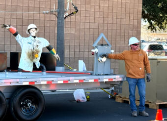 Freddy is a gaunt and skeletal character, a fictional fixture, on the OPD5 Power Line Safety Demonstration Trailer. And if you suspect that maybe Freddy has come in contact with high voltage electricity a few too many times, you’d be absolutely right!