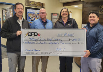OPD5 officials visited local high schools last week to present nearly $4,000 raised through the