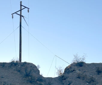 A power transmission line in a remote area near Bunkerville was severed and brought down in an incident believed to have taken place on Tuesday, Dec. 17. The damage to the line was apparently caused by gunfire.